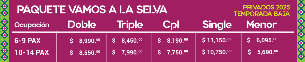 Si viajan menos de 6 personas o en temporada alta contáctanos para cotizarte.